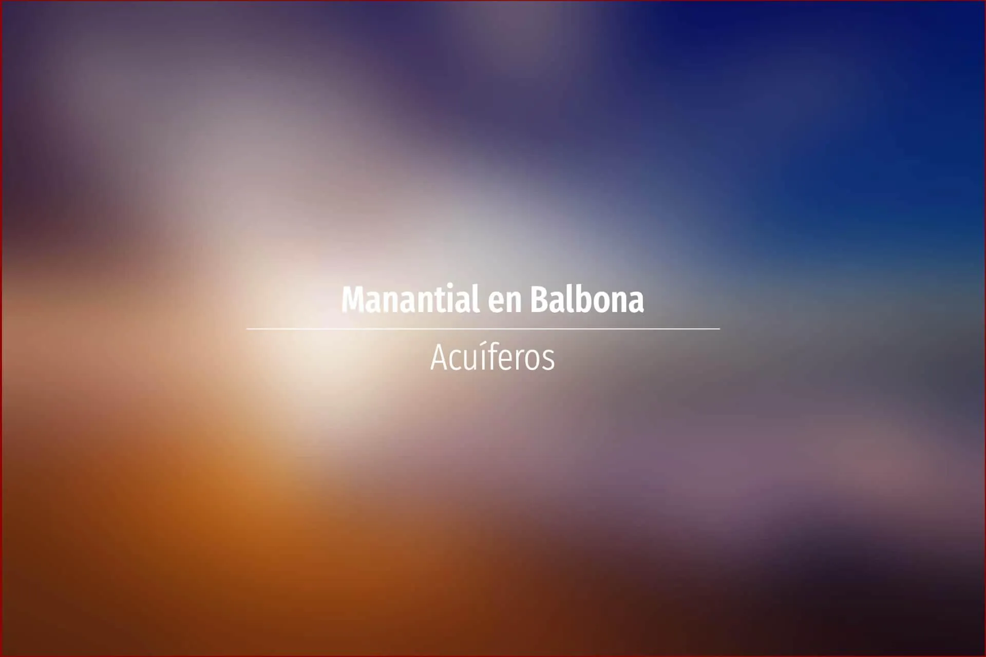 Manantial en Balbona. Acuífero en Asturias: Cuenca: Norte Unidad Hidrogeológica: Oviedo- Cangas de Onís Sistema acuifero: Unidad mesoterciaria Gijón-Cangas de Onis Cota: 198 Naturaleza: Manantial Uso: No se utiliza Perímetro: ..