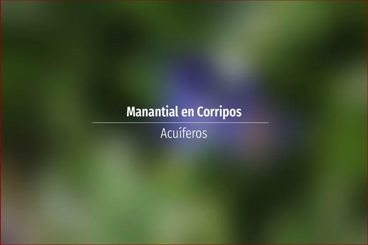 Manantial en Corripos. Acuífero en Asturias: Cuenca: Norte Unidad Hidrogeológica: Oviedo- Cangas de Onís Sistema acuifero: Unidad mesoterciaria Gijón-Cangas de Onis Cota: 300 Naturaleza: Manantial Uso: Abastecimiento a núcleo ...